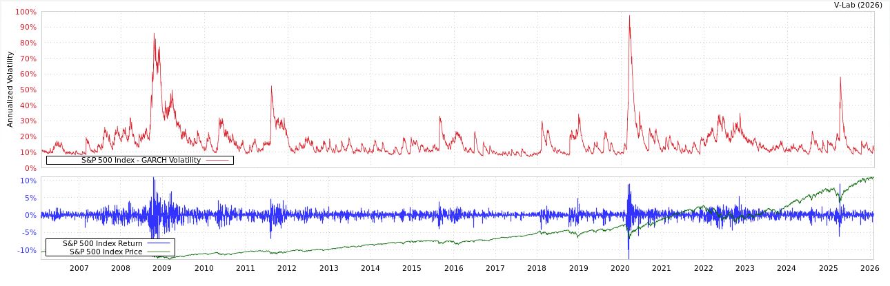 Here is an example of the correlation between the price of the S&P 500 and it’s volatility.